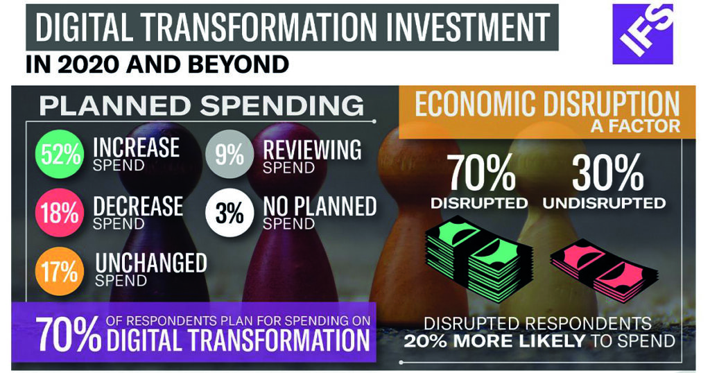 Die aktuelle Krise und die damit einhergehenden Herausforderungen haben die Pläne zur digitalen Transformation in Unternehmen nicht negativ beeinträchtigt. Das geht aus einer Umfrage des Business-Software-Anbieters IFS hervor. Demzufolge geben 52 Prozent aller befragten Unternehmen auf internationaler Ebene an, ihre Ausgaben für die digitale Transformation erhöhen zu wollen. Insgesamt wurden 3.032 Führungskräfte in Großbritannien, den USA, Australien, Frankreich, Deutschland und den skandinavischen Ländern befragt.