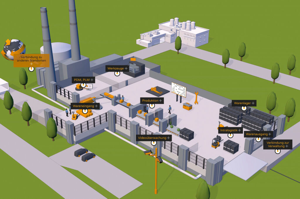 Für einen hochgradig digitalisierten Produktionsbetrieb hat die Innovation Alliance das Konzept ‚Factory 2025‘. Mit einer dreidimensionalen, grafischen Darstellung bilden die Innovation-Alliance-Partnerunternehmen Möglichkeiten ab, mit denen Firmen ihre Produktionen bis zum Jahr 2025 digitalisieren können. „Viele Produktionsbetriebe sind in einzelnen Schritten schon sehr weit. Diese sind aber oft nicht miteinander vernetzt, was zu unvorteilhaften Brüchen in der Digitalisierungskette führt. Einen homogenen Stand gibt es nicht“, sagt Frank Dittmar, Business Development Manager bei Pan Dacom Networking, Mitgliedsunternehmen des Digitalisierungsverbunds. So laufen Prozesse in der Verwaltung oft noch überwiegend oder sogar komplett abgekoppelt vom restlichen Betrieb ab. Auch bei der Anbindung der Maschinen an Warenwirtschaftssysteme gibt es noch Spielraum. „Wir zeigen grundlegende Digitalisierungsschritte auf, die Produktionen in den nächsten vier Jahren mit uns umsetzen können und müssen, um wettbewerbsfähig zu bleiben“, so Dittmar weiter. Die Interactive Factory mit dem Konzept ‚Factory 2025‘ soll die Digitalisierungsmöglichkeiten interaktiv, animiert und übersichtlich darstellen – angefangen vom Wareneingang bis hin zur Anbindung der Verwaltung sowie anderer Standorte. Der Fokus liegt auf Technologien für die vier Hauptanforderungen von Unternehmen – Effizienzsteigerung, Kostensenkung, Schnelligkeit und Produktindividualität.