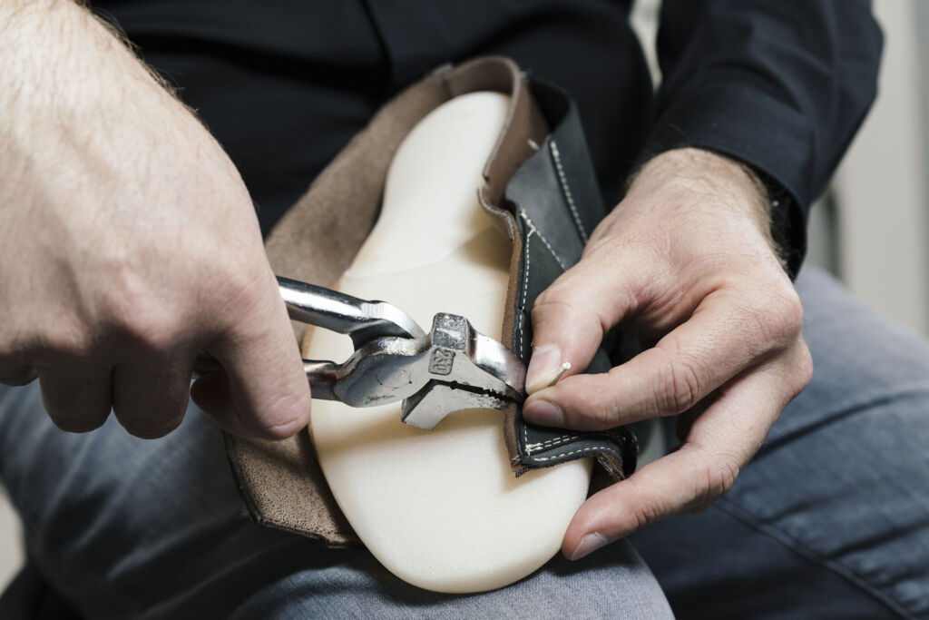 Das Protiq-Team hat ein Angebot für die additive Fertigung der Schuhleisten erarbeitet. Als ideales Material erwies sich in diesem Fall der synthetische Kunststoff TPU, denn die elastischen Eigenschaften von Gummi lassen sich mit zugleich hoher Festigkeit gegen mechanische Belastungen kombinieren. In Zusammenarbeit mit dem Materialhersteller BASF hat Protiq die Prozessparamater des TPU auf die Anforderungen der Orthopädieschuhtechnik abgestimmt. Die Bedürfnisse von Stefan Brockmann sind in diese Vorgehensweise eingeflossen. „Als ich den ersten aus TPU produzierten Leisten mit in meine Werkstatt genommen und dort bearbeitet habe, hat mich überrascht, dass die Eigenschaften eher mit denen von Holz als von Schaum zu vergleichen sind“, so Brockmann. „Die Leisten zeichnen sich durch sehr gute mechanische Eigenschaften aus und können nahezu ohne Verschleiß geschliffen, geklebt, getackert, gebohrt und gepresst werden. Alle Arbeitsschritte fühlen sich wie bei meinen gewohnten Holzleisten an, lediglich der Schleifstaub ist jetzt eben weiß.“ Als weitere Handhabungsvorteile führt Brockmann die Oberfläche der Leisten, ihre Biegsamkeit bei der Entnahme aus dem fertigen Schuh sowie das reduzierte Gewicht gegenüber Holzmodellen an.