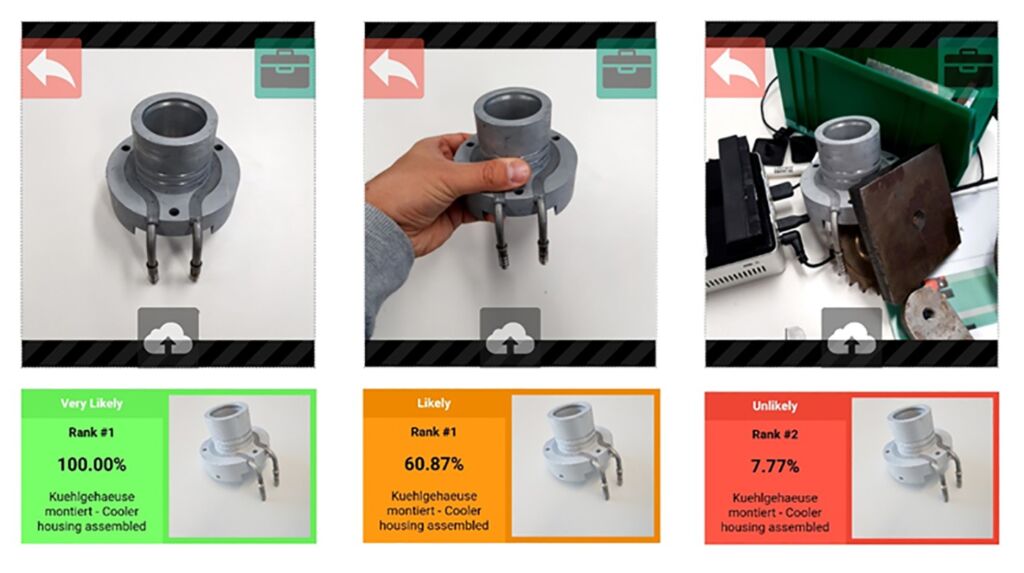Das Forscherteam hat die Funktionen des Erfassungssystems zudem in eine browserbasierte, betriebssystemunabhängige App übertragen, die auf Smartphones, Tablets, Laptops und Desktop-Rechnern läuft. Dabei musste der Trainingsdatensatz mit Smartphone-Daten angereichert und neu trainiert werden. „Wir haben die Algorithmen mit hundert Bauteilen getestet, die in unterschiedlichsten Szenen fotografiert wurden. Pro Bauteil wurden 50 Bilder aufgenommen. Die App zeigt dem Anwender innerhalb von wenigen Sekunden fünf und weniger infrage kommende Bauteile an, unabhängig vom Licht, vom Hintergrund und von der Szenerie. Die Erkennung ist so robust, dass sie die manuelle Suche ersetzen kann“, sagt der Ingenieur. Im Logic.Cube wurden Erkennungsraten von 98 Prozent erzielt, der Suchradius wurde von 4.500 Bildern auf fünf eingeschränkt. Eine ebensolche Erfolgsquote soll künftig mit der App erzielt werden.