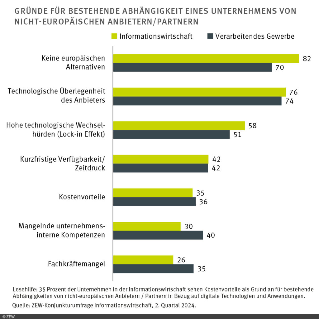 Mangel an europäischen Alternativen und technologische Überlegenheit als Gründe für Abhängigkeiten