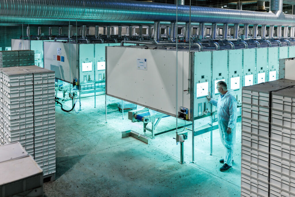 In einer Fabrikhalle von Enorm Biofactory, einer kommerziellen Insektenfarm, im Herzen Dänemarks, 50km südwestlich von Aarhus, ist Tag für Tag und fast rund um die Uhr ein buchstäblich bewegendes Schauspiel zu beobachten: Bald werden sich hier in unzähligen Kästen Millionen von Fliegenlarven durch ihr Futter fressen, während die Behältnisse beständig von leise vor sich hin surrenden Kuka Robotern in der Ausführung Hygienic Oil (HO) bewegt, gestapelt, geleert und gefüllt werden. Herzlich willkommen bei Enorm Biofactory, der größten und ersten kommerziellen Insektenfarm Skandinaviens!