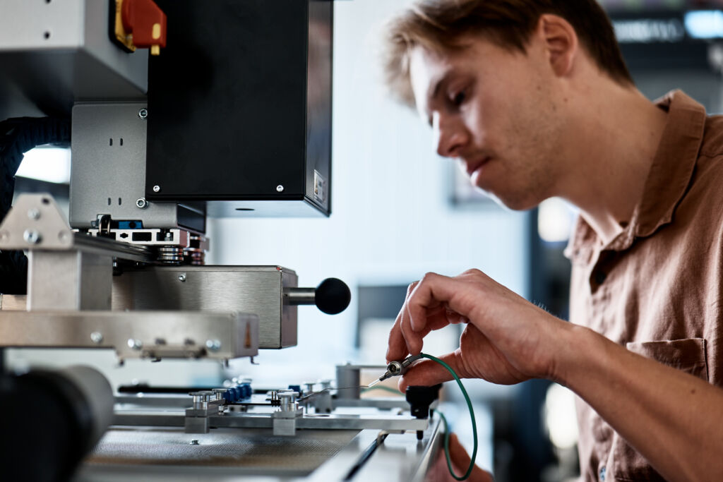 Die Übertragung von Sprachsignalen an entfernte Server birgt Latenzzeiten, die in sicherheitsrelevanten Umgebungen nicht akzeptabel sind. Ebenso spielen das Manipulations- und Ausfallrisiko einer Netzwerkverbindung eine Rolle. Der Einsatz in sicherheitskritischen Umgebungen in Industrie und Medizin erfordert Lösungen, die lokal und in Echtzeit arbeiten. Hier kommen Sprachsteuerungsmodelle ins Spiel, die mit Embedded-KI umgesetzt werden. Hierbei werden nicht nur einzelne Wakewords erkannt, sondern bis zu 30 vordefinierte Begriffe, was komplexe Befehle ermöglicht. Ein Schlüsselwort aktiviert das System. Anschließend können komplexe Kombinationen dieser vordefinierten Wortgruppe gesprochen und von der KI ausgewertet werden, die zusammen mit den Mikrofonen auf dem gleichen kleinen Board sitzt (Embedded-KI-Systemkomponente). In der industriellen Bildverarbeitung stellen PC-basierte Systeme oft eine technische Hürde dar. Die Trennung von Bildaufnahme und Datenverarbeitung führt häufig zu Latenzen, erhöhtem Platzbedarf und einem komplexen Wartungsaufwand. Besonders in schnellen Produktionslinien erschwert die Synchronisation zwischen Sensor und externem Rechner eine stabile Prozesskontrolle. ‣ weiterlesen